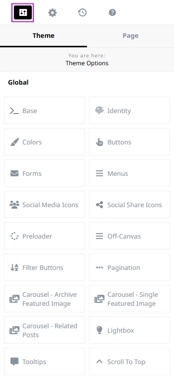 - Choose between Theme and Page options.
